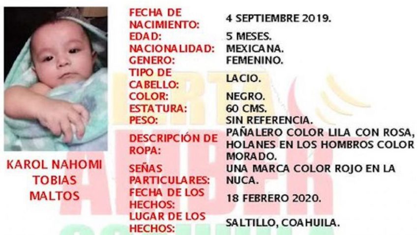 Tras el plagio se activó la alerta Amber y se solicitó la colaboración a todas las corporaciones del Estado, del Municipio y de la Federación para buscar a la menor.