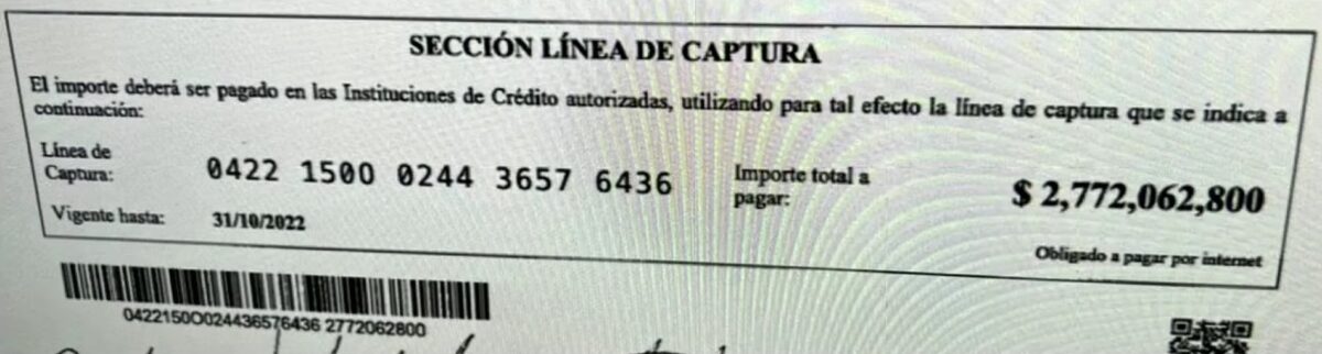 En su conferencia matutina mostró el recibo de pago por 2 mil 772 millones 62 mil 800 pesos al celebrar la decisión de la empresa y agradecer el cumplimiento del mandato judicial, pues hubo voluntad de respetar la resolución.