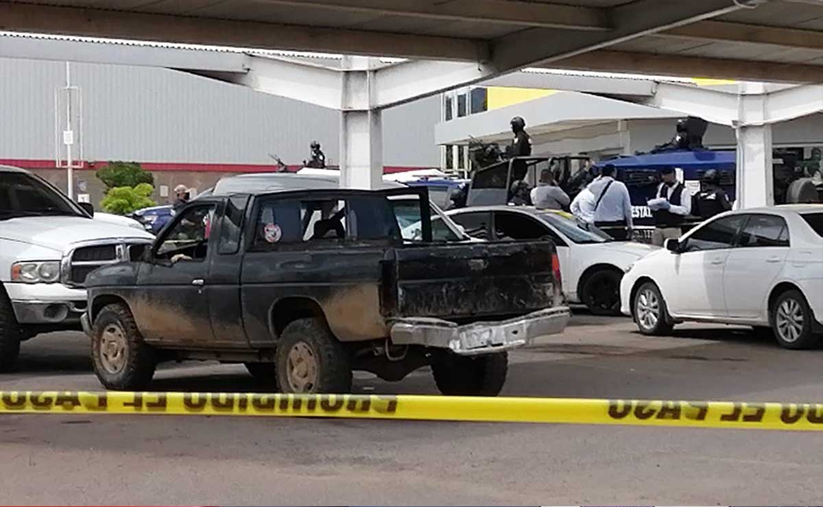 Según información la camioneta estaba estacionada en la plaza comercial, cuando fue baleada por dos hombres armados.