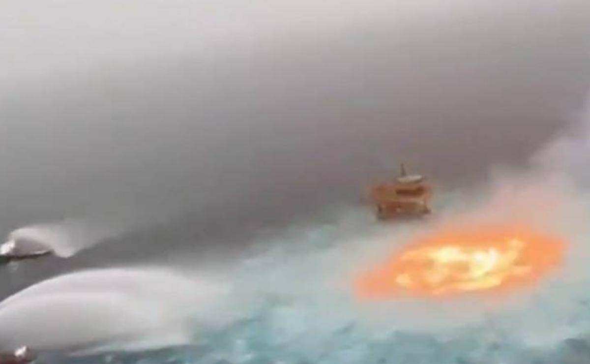 “Controla Pemex emanación de gas y fuego en ductos submarino en cercanías de la plataforma satélite KU-C en la sonda de Campeche.