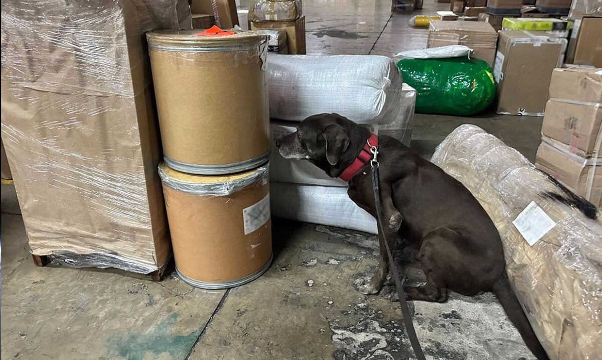 Un cargamento de droga fue asegurado en las instalaciones de una empresa de paquetería del estado de Chihuahua, un perrito especializado en detección de enervantes detectó las bolsas de hierba seca ocultas en unos cilindros de cartón sellados.