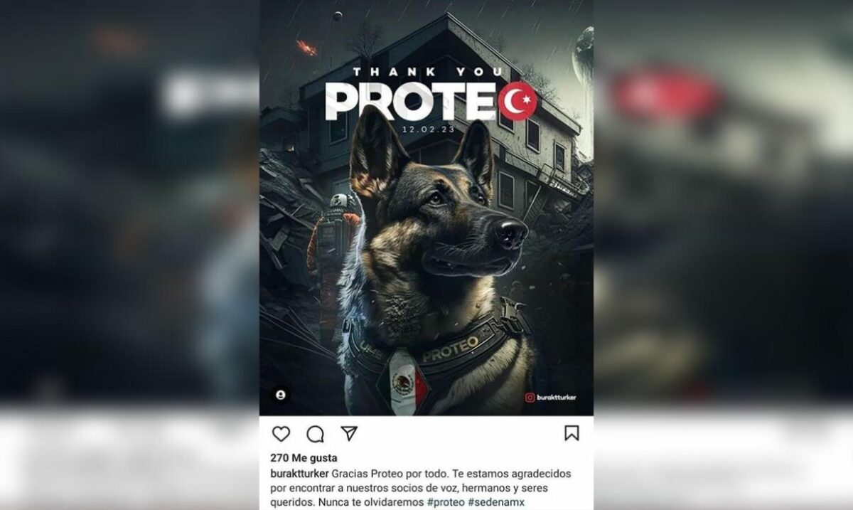 El diseñador gráfico, conocido como Burak Turker, subió a las redes sociales la imagen del perrito mexicano Proteo con el texto “Gracias Proteo, te estamos agradecidos por encontrar a nuestros socios de voz, hermanos y seres queridos. Nunca te olvidaremos”.