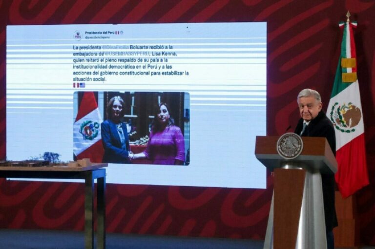 Respecto a la decisión del gobierno peruano de llamar a consultas a su embajador en México, luego de que el gobierno mexicano, junto con los de Argentina, Colombia y Venezuela, pidió en un comunicado que se respete la democracia en Perú, López Obrador dijo que México ya ha fijado su postura política sobre la situación y consideró que “debe respetarse el voto de los ciudadanos, la democracia, y que no debe usarse la fuerza, no se debe reprimir al pueblo y hay que garantizar las libertades”.