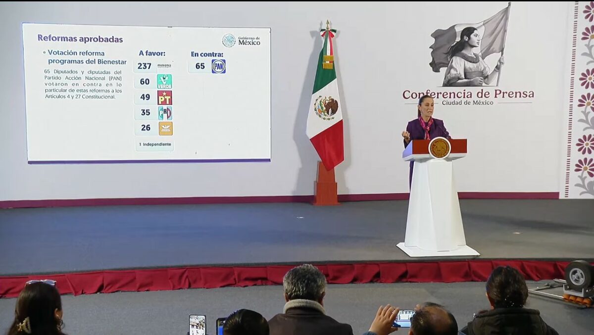 La Presidenta Sheinbaum Pardo resaltó el avance en el Congreso de la reforma para garantizar los programas de bienestar, actualmente con 30 millones de beneficiarios, pero advirtió que el PAN votó en contra y eso, dijo, “es importante que quede en la memoria de los mexicanos”.