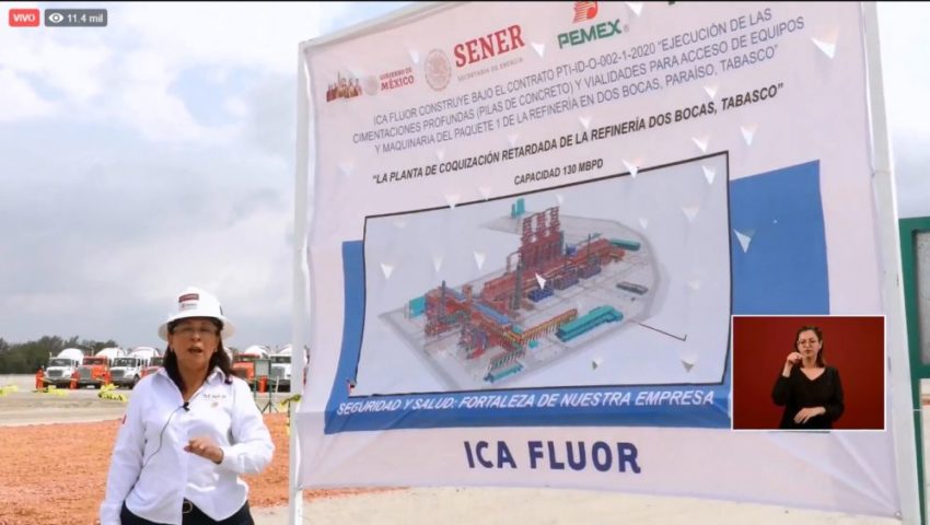 Actualmente la construcción de la refinería tiene trabajando a tres mil obreros y Rocío Nahle, secretaria de Energía, informó en el resumen semanal que la planta coquizadora está siendo construida con “tres mil 170 pilas de acero y concreto en su cimentación”.