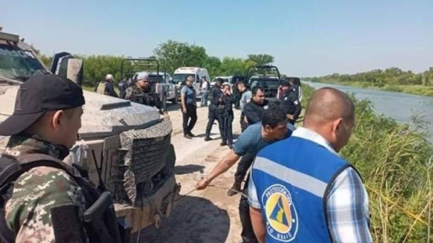 Luego de una persecución y ser agredidos a balazos, cinco agentes de la Policía Estatal de Tamulipas, cayeron al Canal El Culebrón, con su unidad móvil.
