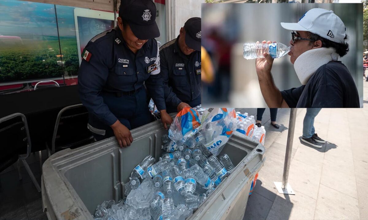 Se trata de módulos instalados en pleno centro de la capital del estado de Nuevo León, para que los ciudadanos se hidraten y prevengan un golpe de calor; en los que se colocaron sillas, ventiladores y se reparten botellas de agua.