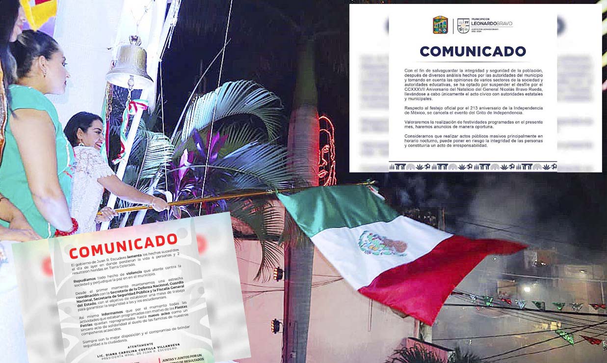 Debido a la violencia que impera en el estado de Guerrero, y que parece haberse desbordado en las ultimas semanas, por lo menos en dos municipios de esta entidad los festejos de las fiestas patrias fueron cancelados.