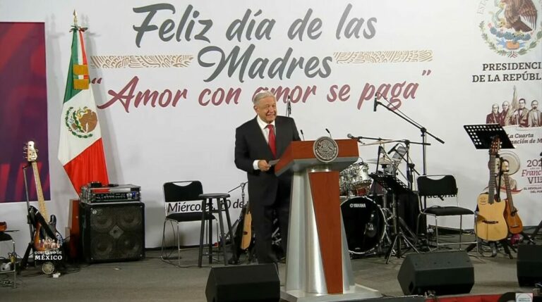 Conferencia de prensa muy breve para dar paso al concierto de Eugenia León y María Inés Ochoa en ocasión del Día de las Madres, pero en la que aprovechó para ratificar su propuesta de elegir a los ministros de la Suprema Corte de la Justicia de la Nación, cuando hizo una referencia al activismo del bloque conservador: