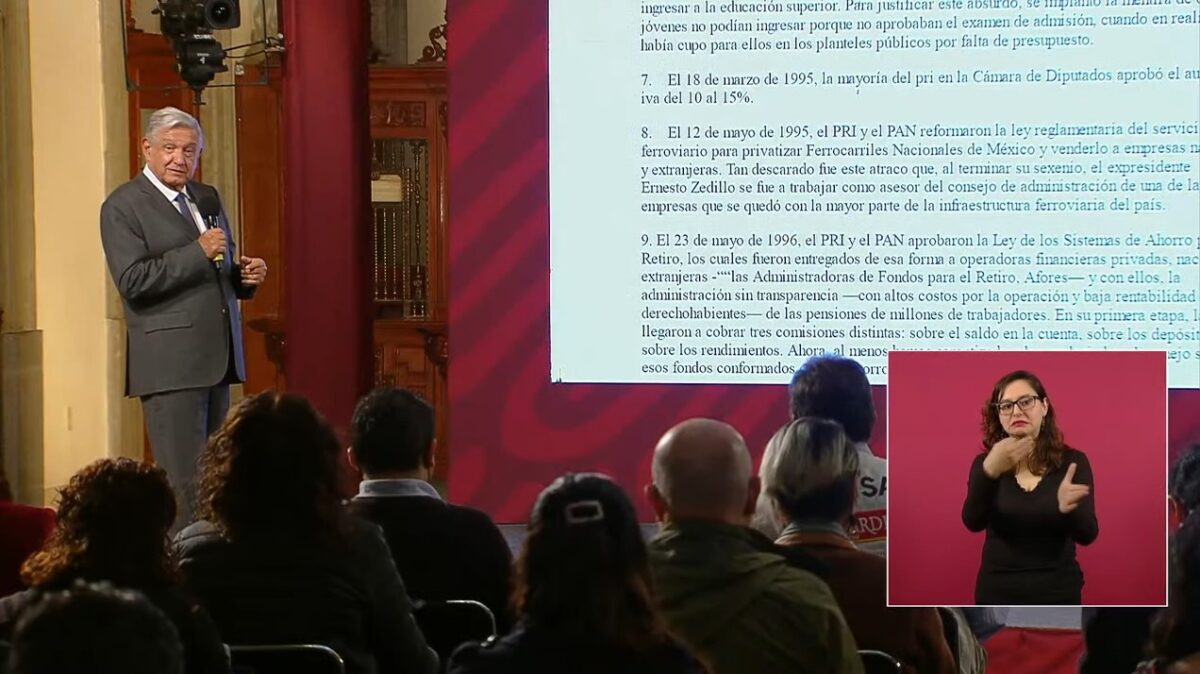 Al continuar, aseveró que en 1993 avalaron una reforma para limitar la gratuidad en la educación a la primaria y secundaria; el 18 de marzo de 1995, la mayoría priísta aprobó el aumento del IVA del 10 al 15 por ciento; el 12 de mayo de 1995, se avaló la reforma al servicio ferroviario que permitió su privatización; y en 1996 fue creado el sistema de Afores con un alto cobro de comisiones, que, ponderó, se modificó hasta el presente sexenio.
