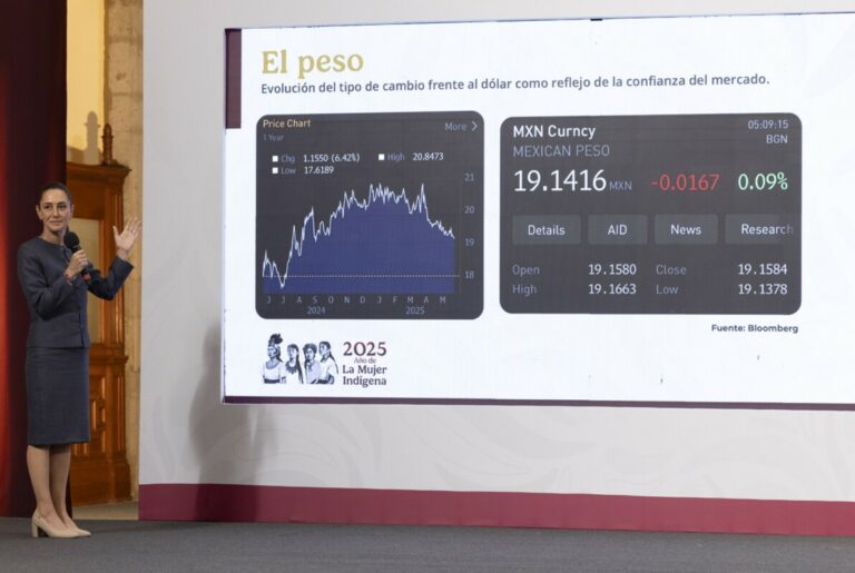 La presidenta Claudia Sheinbaum indicó que la economía mexicana se encuentra estable y las percepciones de los mercados financieros internacionales lo confirman, ya que el peso mantiene su fortaleza y existe confianza de los mercados financieros internacionales, al calificar con menor riesgo a nuestro país.