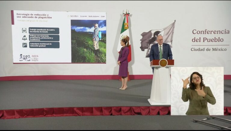 Explicó que la prohibición de estos 35 plaguicidas forma parte de un proyecto más amplio del Gobierno Federal que prevé por lo menos dos nuevos listados más que se podrán a consideración de la presidenta para ser prohibidos a lo largo del sexenio.