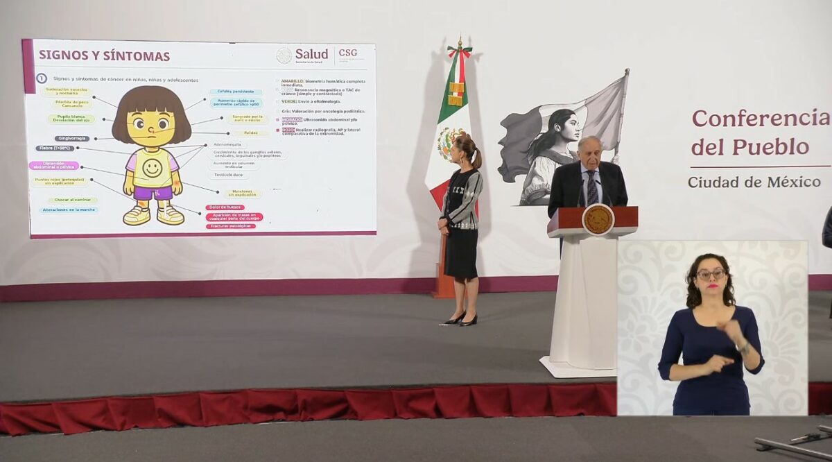 Durante la Mañanera del Pueblo, el secretario destacó que el cáncer infantil es la primera causa de mortalidad en niños 5 a 14 años y que se busca pasar de una sobre vida de 52 por ciento al 70 por ciento, por lo que se requiere aumentar la capacidad diagnóstica en los médicos de primer contacto.