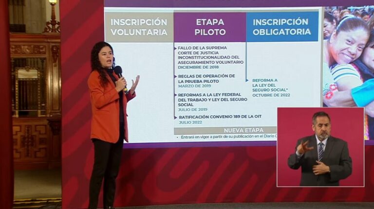 En conferencia de prensa por la mañana, la secretaria del Trabajo, Luisa María Alcalde, dijo que la nueva etapa de incorporación obligatoria al IMSS es resultado de una reforma a la Ley del Seguro Social que fue aprobada en octubre del 2022 y que está próxima a publicarse en el Diario Oficial de la Federación (DOF), esta semana.