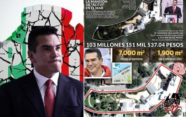 El dirigente nacional del PRI, Alejandro Alito Moreno Cárdenas, estaría vinculado con al menos 34 propiedades en la ciudad de Campeche, muchas de ellas presuntamente adquiridas mediante prestanombres.