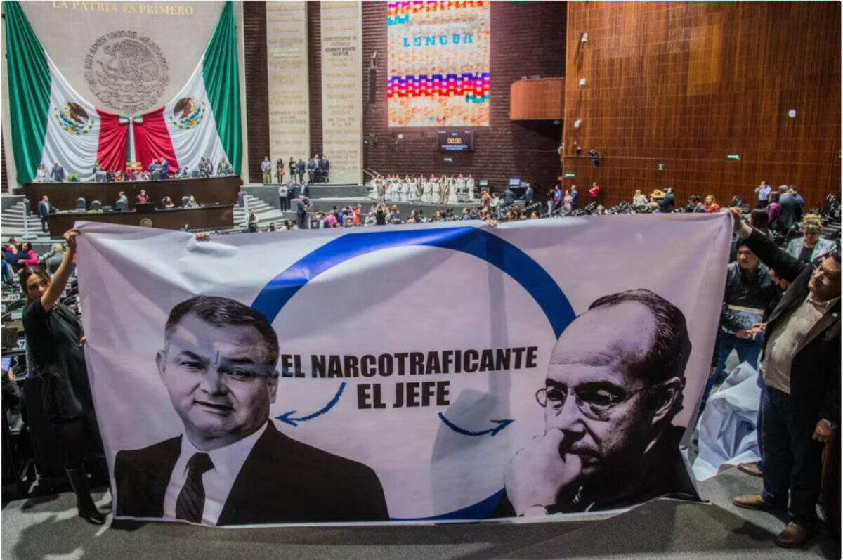 El diputado Sandoval precisó que “nunca antes un secretario de Estado había sido acusado y declarado culpable de proteger a los grupos del narcotráfico. Sin embargo, las acusaciones contra el expresidente Felipe Calderón generan aún mayor preocupación respecto de la profundidad con la que los cárteles del narcotráfico han operado desde las estructuras de seguridad de nuestro país, dando lugar a una auténtica captura del Estado por parte de la delincuencia organizada”.