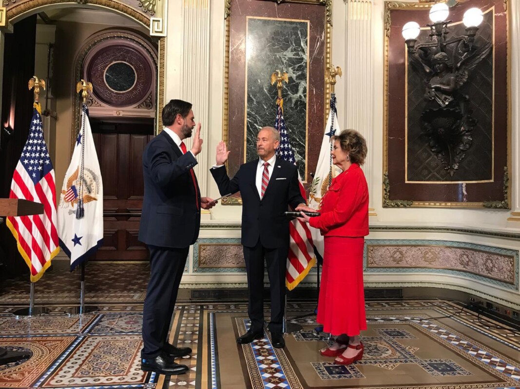 El vicepresidente de Estados Unidos, JD Vance, tomó protesta este martes a Ron Johnson como nuevo embajador estadounidense en México.