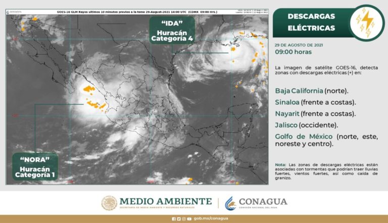 De acuerdo con la Conagua, “Nora” provocará lluvias puntuales torrenciales en Nayarit y Sinaloa, así como puntuales intensas en Baja California Sur, Sonora, Durango, Jalisco, Michoacán y Guerrero.