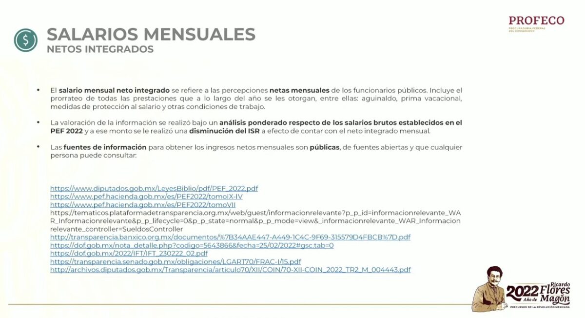 Éstos, de acuerdo a la información presentada por el titular de la Profeco son los funcionarios públicos que perciben mensualmente, de manera neta, más recursos públicos que el mandatario federal.