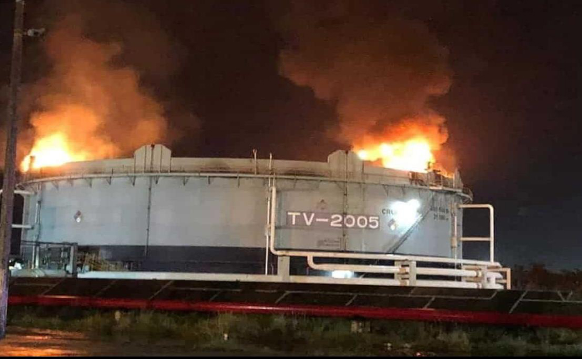 Según fuentes cercanas cayó rayo en Dos Bocas los que ocasiona incendio de tanque de crudo, no se tiene información oficial Video: Bermudez pic.twitter.com/jvxbyGPzeU