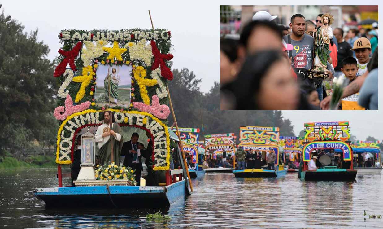 Cientos de fieles devotos a San Judas Tadeo participaron en una procesión a través de los canales de Xochimilco en honor a la reliquia del santo. Los fieles católicos hicieron el recorrido a bordo de decenas de las tradicionales embarcaciones conocidas como trajineras.