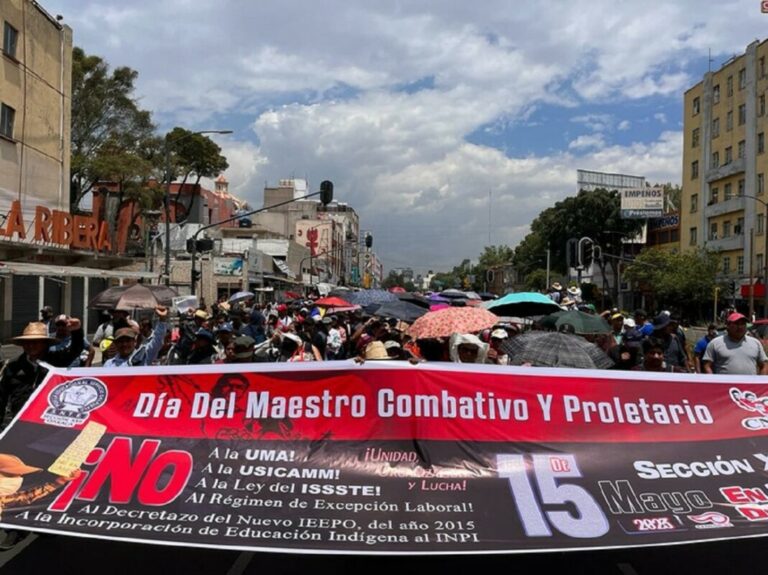Al conmemorar el Día del Maestro con una movilización nacional, que inició del metro San Cosme y avanza hacia el Zócalo capitalino, integrantes de la CNTE aseguraron los incrementos salariales son insuficientes, los programas de basificación avanzan lentamente, el derecho a elegir una representación sindical legal y legítima es inexistente, carecen, lamentaron, de una asistencia médica y social que responda a sus necesidades concretas y enfrentan planes y programas de estudio “impuestos nuevamente” desde los escritorios de la Secretaria de Educación Pública (SEP).