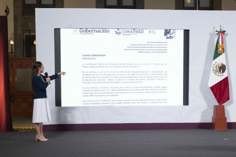 La carta firmada por Claudia Olivia Morales Reza, presidenta de Conapred, y Oscar Camacho Guzmán, director general de Radio, Televisión y Cinematografía, señala que el análisis realizado encontró que el spot contiene un mensaje discriminatorio “que atenta contra la dignidad humana y que puede fomentar actos de rechazo o violencia hacia las personas en situación de movilidad”.