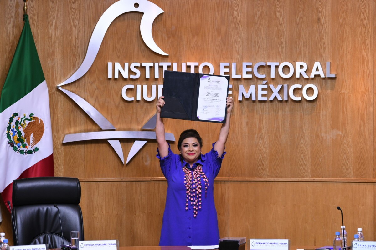 Clara Brugada Molina recibió la Constancia de Mayoría, emitida por el Instituto Electoral de la Ciudad de México (IECM), que la acredita como jefa de Gobierno electa de la CDMX, tras las elecciones del pasado 2 de junio.
