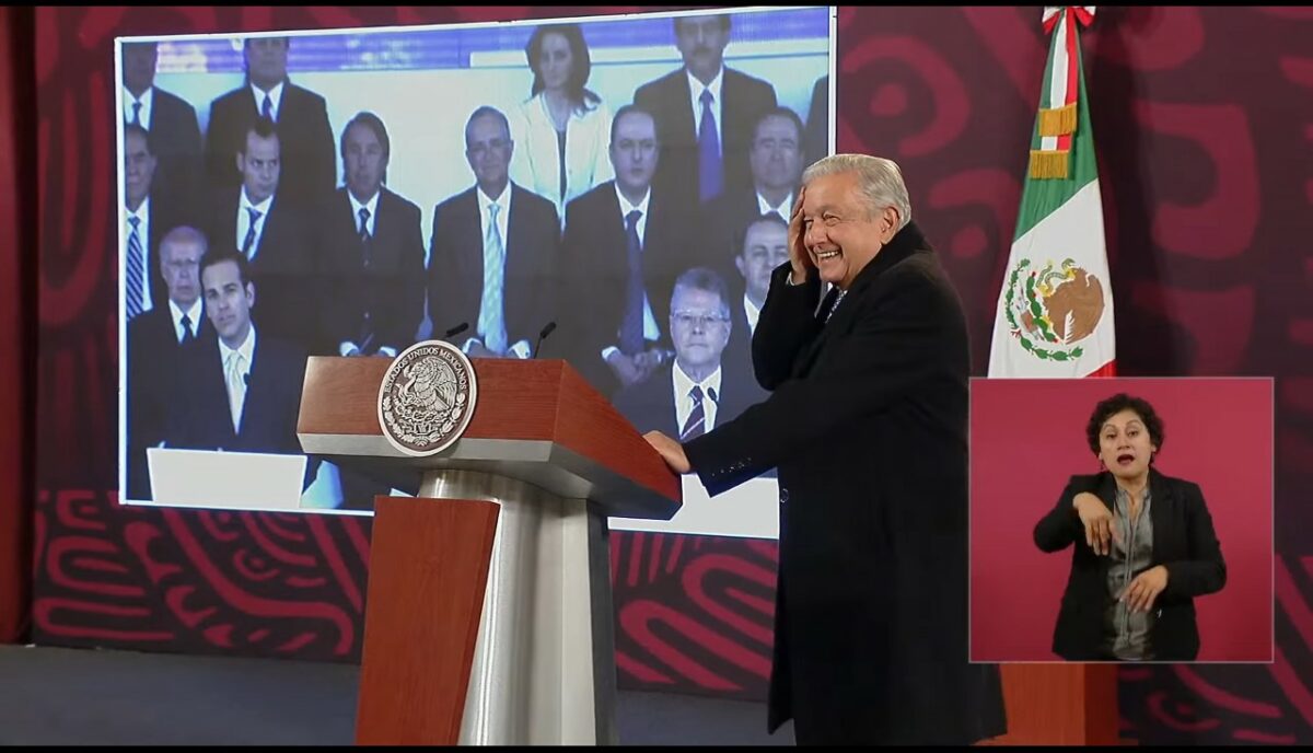 Durante la conferencia matutina de este 24 de enero, el mandatario mexicano exhibió una foto en la que al centro se encuentran Emilio Azcárraga y Ricardo Salinas Pliego, dueños de las televisoras Televisa y TV Azteca respectivamente, rodeados por, al menos, de doce personas entre quienes destacan los comunicadores Sergio Sarmiento (en aquel entonces director de noticieros de TV Azteca), Carlos Loret de Mola, el presidente de Grupo Imagen, Olegario Vázquez Aldir, y el exrector de la Universidad Nacional Autónoma de México (UNAM), José Narro.