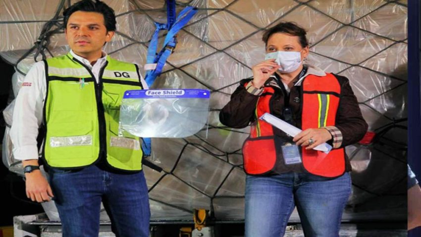 Ayer sábado como a las 20:20 horas llegó al Aeropuerto Internacional de la Ciudad de México (AICM) un avión desde Shanghái, China, con más de 192 mil caretas protectoras para enfrentar la epidemia de Covid-19.