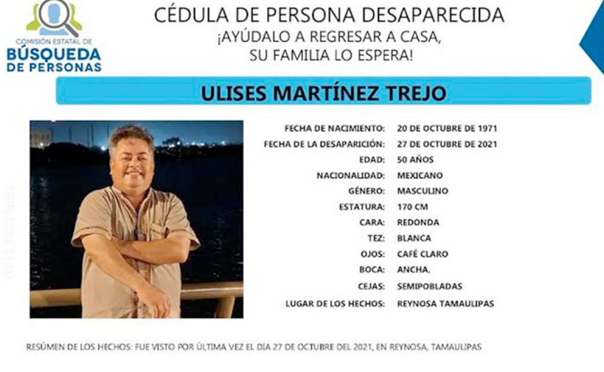 Se sabe que los familiares interpusieron la denuncia de la desaparición ante la Fiscalía General de Justicia; luego de no encontrar al exdiputado local en el Congreso de Tamaulipas por el Partido Acción Nacional (PAN), Ulises Martínez Trejo y su esposa María Idalia Manzanares Bautista.