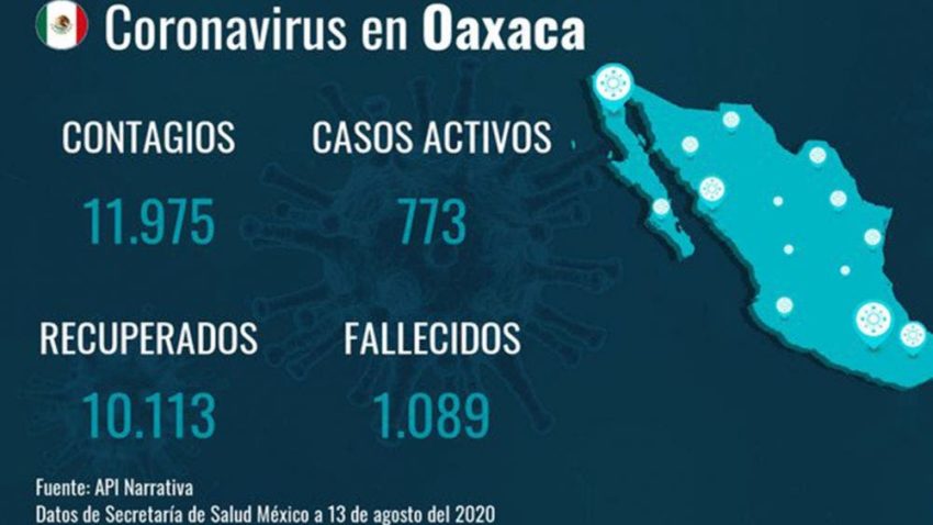 En Oaxaca ha crecido la cifra de personas contagiadas por COVID-19 un 0,82 % tras reportarse 97 nuevos casos en el día de hoy, lo que eleva el número total de positivos en la región a 11,975 personas.