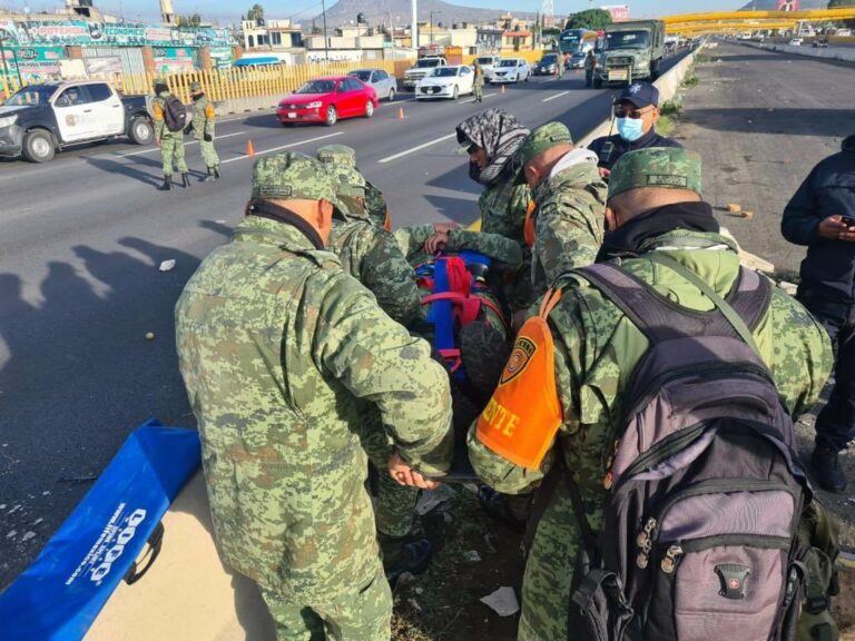 Reportan varios heridos tras chocar camión de la Sedena en la México-Puebla; unidad con soldados se impacta contra un muro de contención.