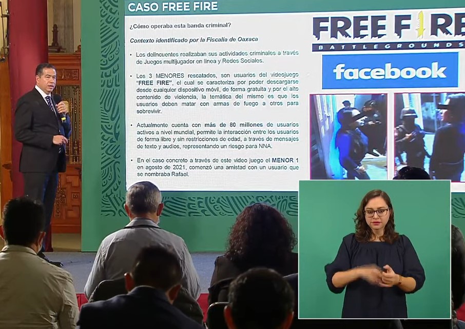 Ricardo Mejía, subsecretario de Seguridad Pública federal, informó que el pasado 9 de octubre fueron rescatados tres menores en Oaxaca de entre 11 y 14 años que habían sido privados de su libertad, con engaños, perfiles falsos, a través de un juego virtual.
