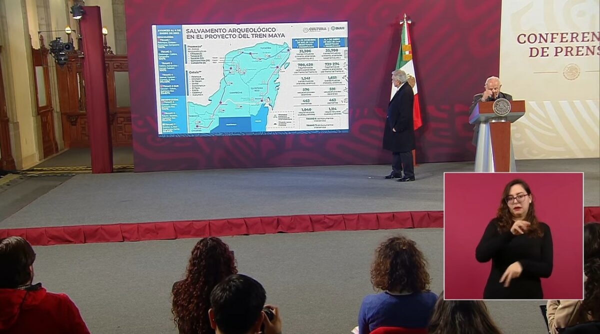 El presidente Andrés Manuel López Obrador afirmó que no tienen precedentes las tareas de rescate arqueológico que se llevan en Campeche, Chiapas, Quintana Roo, Tabasco y Yucatán, estados que componen la ruta del Tren Maya.