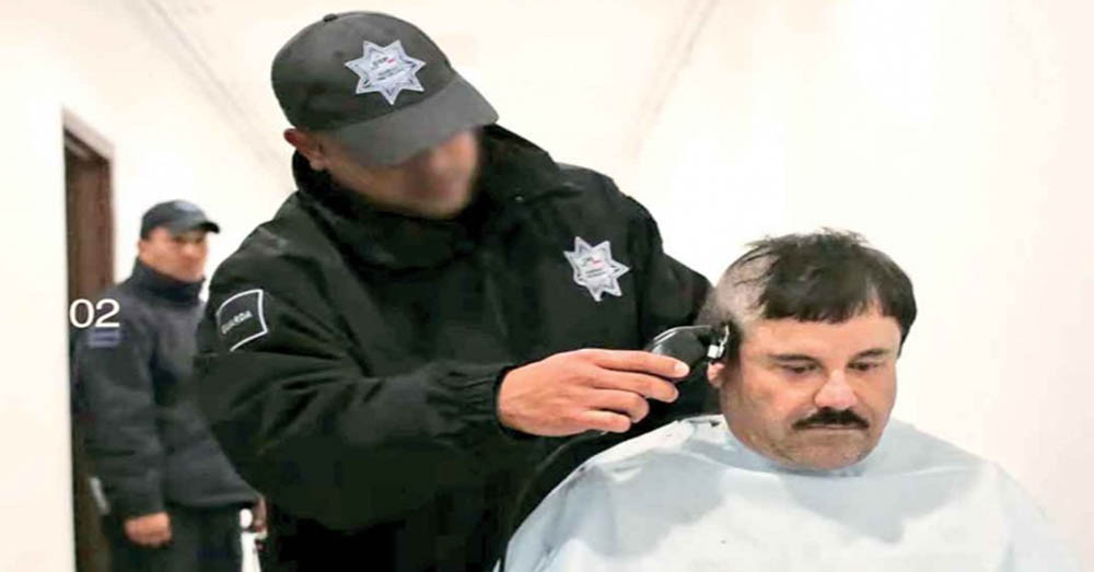 Según Imagen noticias, con Ciro Gómez Leyva, las imágenes difundidas en una primera parte se observa a la Policía Federal trasladar al capo con ayuda de canes, asimismo en el video se muestra como rapan al capo y le asignan un número de reo, el 3870.