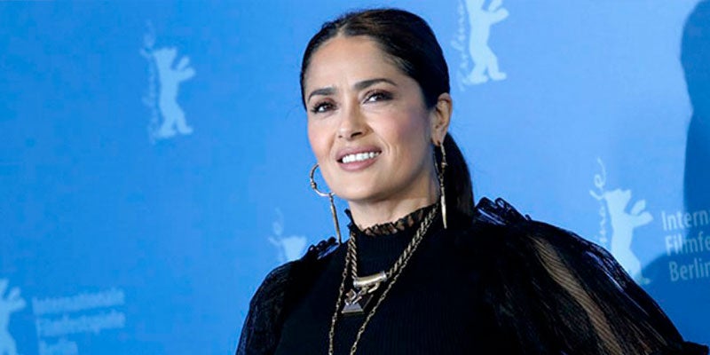 Salma Hayek se presenta con dramático vestido en Festival de Cine