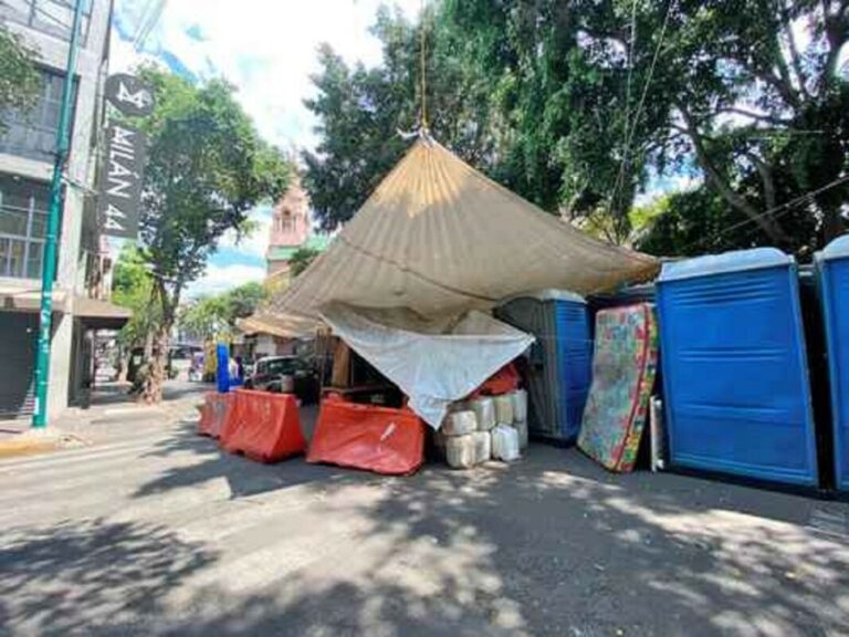 Acusó que se trata de “un grupo afín a Claudia Sheinbaum, así como al partido Morena, toda vez que apoyaron en el retiro de vallas” en dicha plaza y “recibieron colchones el viernes 14 de abril como incentivo”.