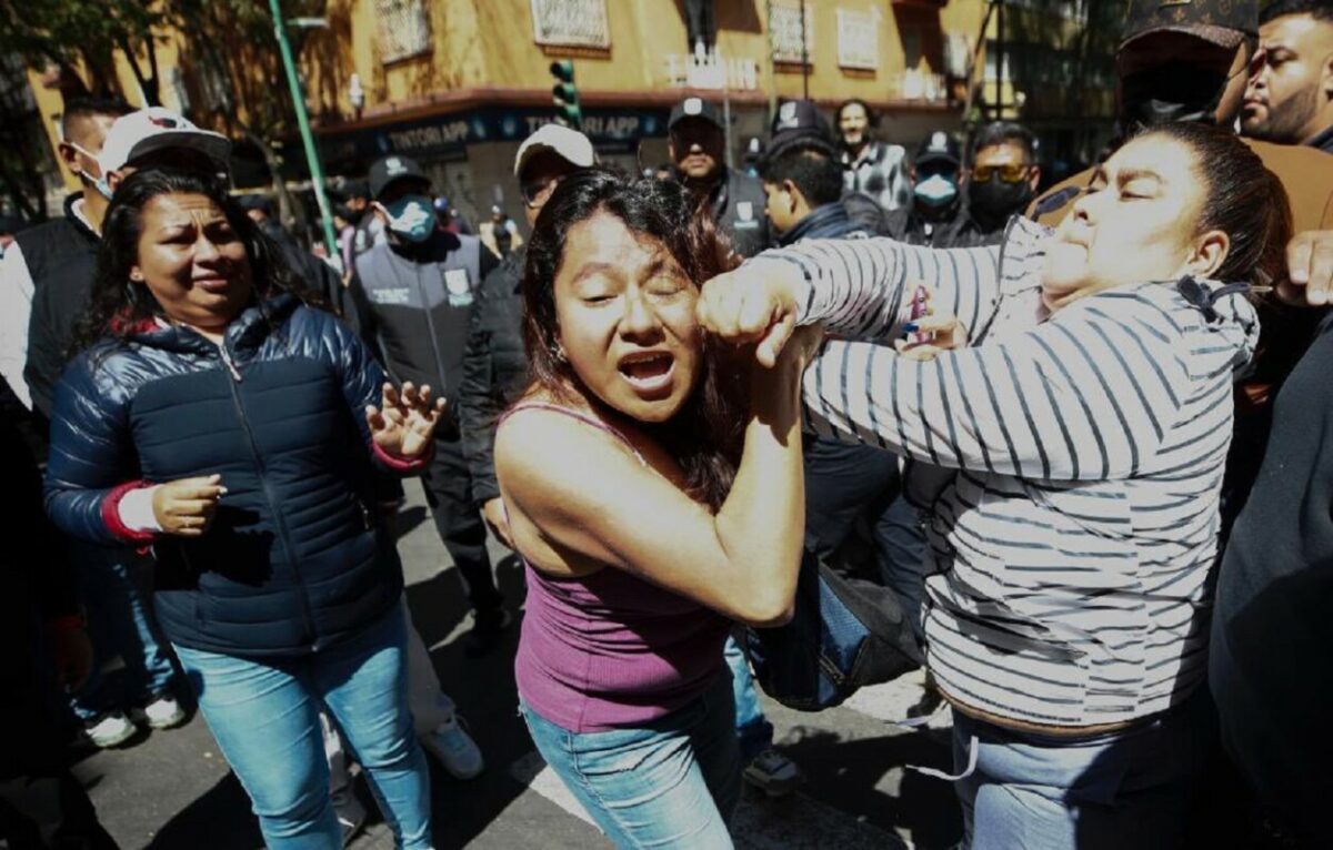 Trabajadores de la Dirección de Gobierno de la alcaldía, de acuerdo con las insignias que portaban en sus uniformes negros, empujaron a algunos de los manifestantes y les quitaron estructuras metálicas, entre gritos de ayuda de los afectados.