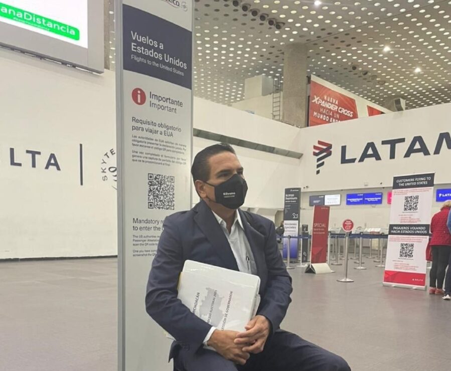 A través de redes sociales, el mandatario estatal compartió una fotografía, en la que se ve sentado en un banco de color verde, mientras esperaba en una sala del aeropuerto, imagen muy semejante a su “plantón” afuera de Palacio Nacional el pasado 29 de junio.