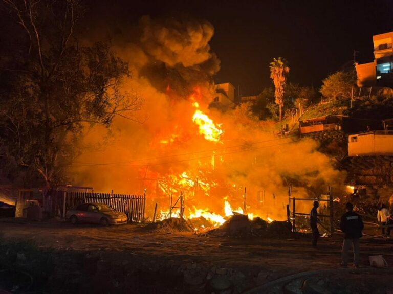 En plena Nochebuena, en Tijuana, Baja California, se registró un fuerte incendio que afectó a por lo menos a 15 viviendas ubicadas en la zona conocida como invasión Libramiento Rosas Magallón.