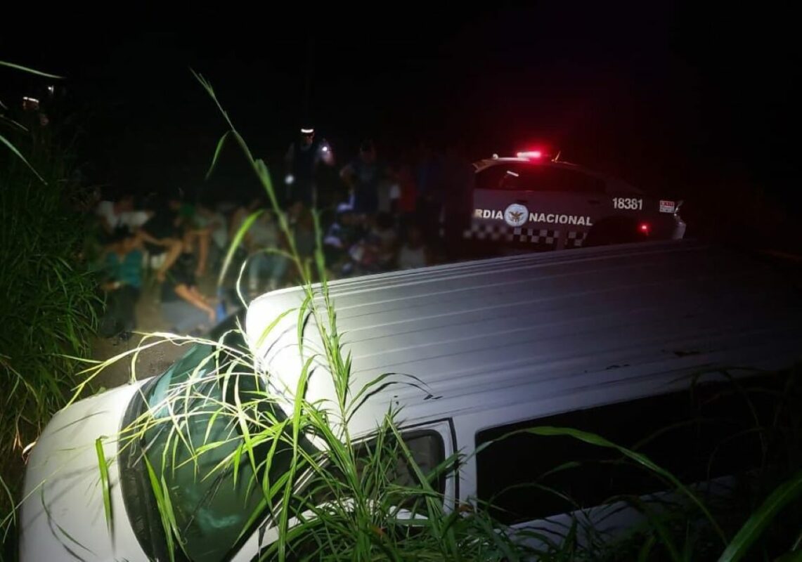 Se descarrilla camioneta con 27 migrantes en Veracruz