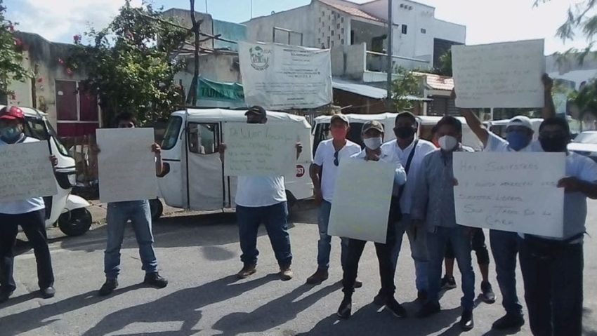 Mototaxistas de Villas del Sol en Playa Del Carmen, se manifestaron en contra de algunos de sus dirigentes, acusando que les cobran cuotas sindicales de la (Confederación Obrera Revolucionaria (COR) pero no les dan los beneficios que les prometen.