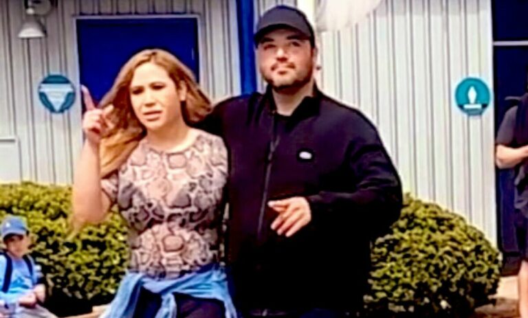 En la foto se puede ver al Mayito Gordo caminando al lado de una mujer. Quienes evidentemente están al aire libre en un espacio público, muy similares al Sea World de San Diego, cerca de un baño y un banco.