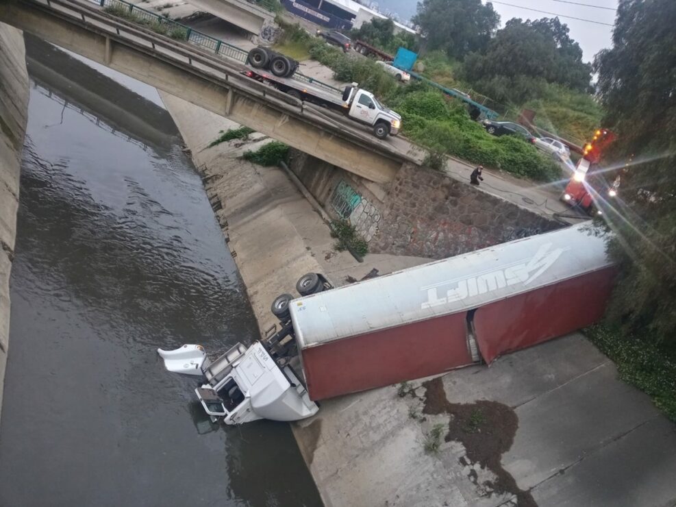 La alcaldía de Cuautitlán Izcalli, del Estado de México, informó que personal de Protección Civil y Bomberos realizó el rescate; pues el joven quedó atrapado dentro de la cabina del tractocamión; pues se impactó dentro del embalse que quedó en las aguas negras; en tanto, la caja volcó en el bordo del embalse.