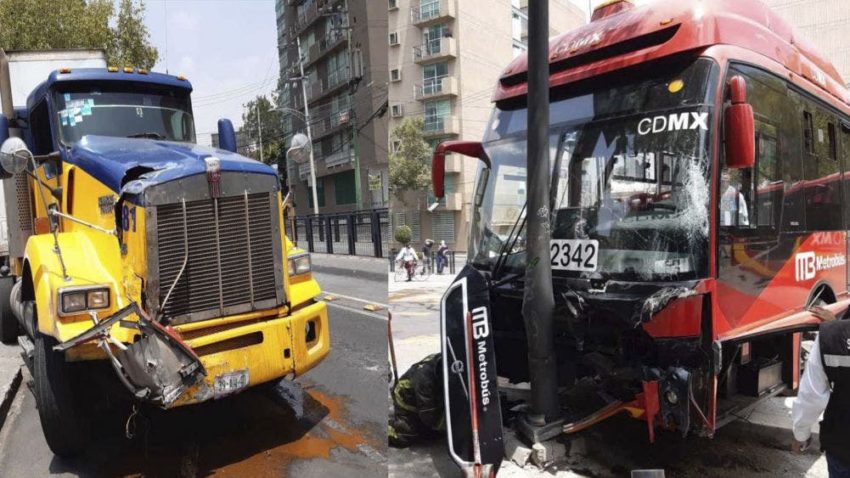 Se suscitó un choque entre un trailer particular y una unidad del metrobús en Av. Insurgentes, col. Roma Sur, @AlcCuauhtemocMx. Debido al impacto el metrobús se impactó contra un poste. Se registran 3 personas lesionadas que están siendo valoradas. #TrabajandoJuntos pic.twitter.com/bTRTKFNPMi