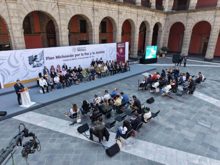 El funcionario federal reiteró sus condolencias por el asesinato de Carlos Manzo, alcalde de Uruapan, perpetrado la semana pasada durante un acto público. “Su muerte nos indigna y nos compromete aún más con la justicia. Como ha dicho la presidenta Claudia Sheinbaum: no habrá impunidad. Quienes generan violencia, quienes cometen delitos y quienes dañan a las familias michoacanas y al pueblo de México serán investigados, detenidos y llevados ante la ley”, advirtió.