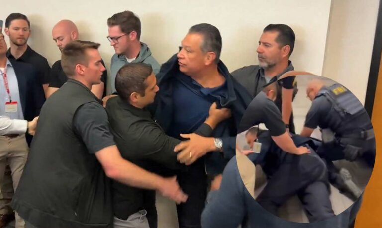 Alex Padilla quien se desempeña como senador demócrata por California fue expulsado esposado de manera violenta y humillante de una conferencia de prensa que la secretaria de Seguridad Interior de Estados Unidos Kristi Noem brindaba a los medios.