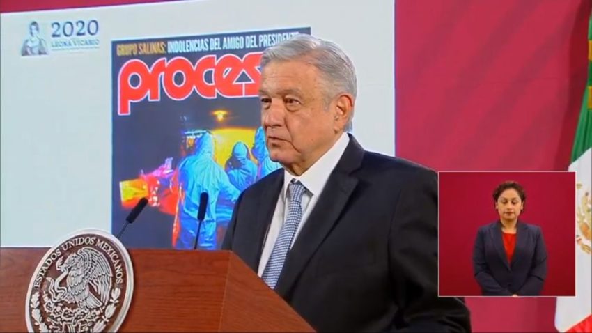 El presidente Andrés Manuel López Obrador pidió a su vocero presidencial, Jesús Ramírez Cuevas, que colocara en pantalla la portada de la edición 2269 del semanario Proceso, y acto seguido expresó: