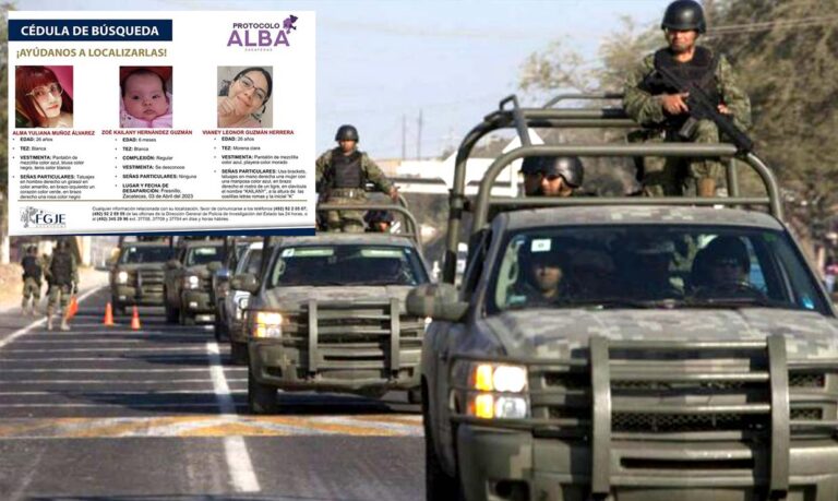 Inicialmente, el secuestro de las tres mujeres trascendió cuando fueron compartidas las fichas de búsqueda por la Fiscalía General de Justicia de Zacatecas (FGJZ), que identificó a las víctimas fueron como una bebé de seis meses de nombre Zoé Kailany “N”; Vianey Leonor Guzmán Herrera, de 26 años de edad, así como Alma Yuliana Muñoz Álvarez, de 26 años de edad.